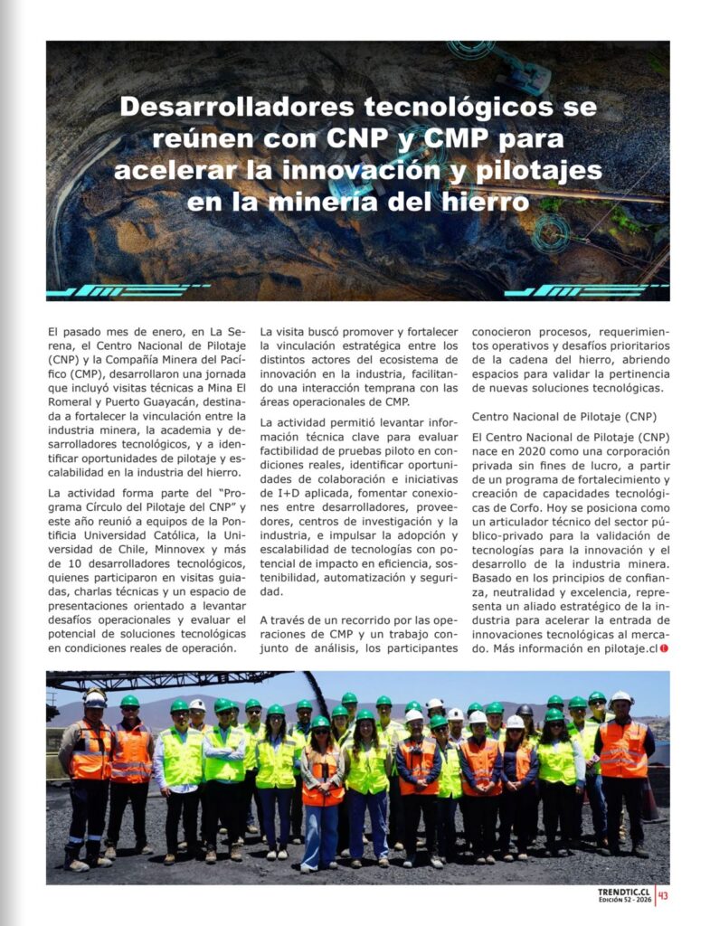 Desarrolladores tecnológicos se reúnen con CNP y CMP para acelerar la innovación y pilotajes en la minería del hierro