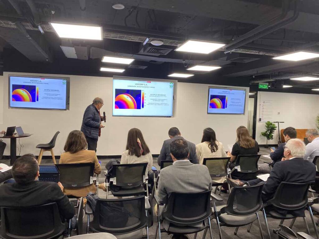Durante el Comité, las 8 empresas preseleccionadas exhibieron en un formato de pitch de 3 minutos sus tecnologías, enfocadas en los desafíos más urgentes de la industria. Entre las soluciones presentadas se destacaron propuestas para la reducción del consumo de agua (separadores de sólidos), seguridad en tuberías (acoples especializados), logística (localización de vehículos mineros), optimización operacional con Inteligencia Artificial (verificación documental, reducción de consumo de diésel) y mejoras en procesos de lixiviación (nanoburbujas, microondas).