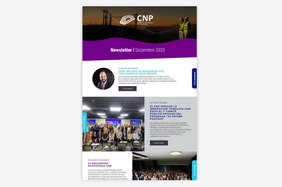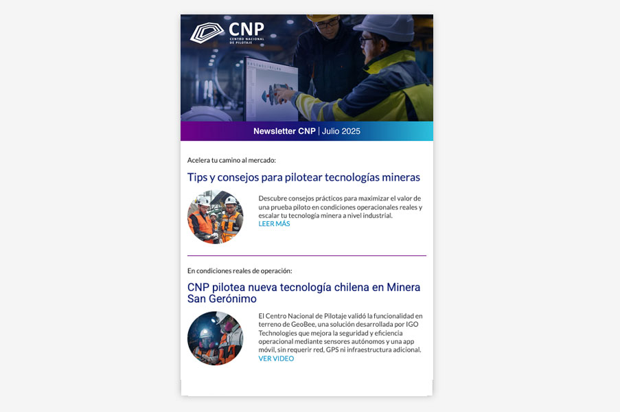 Recibe nuestro Newsletter para estar al tanto de nuevas tecnologías e innovaciones de la minería nacional y avances mundiales en la transformación de la industria minera.