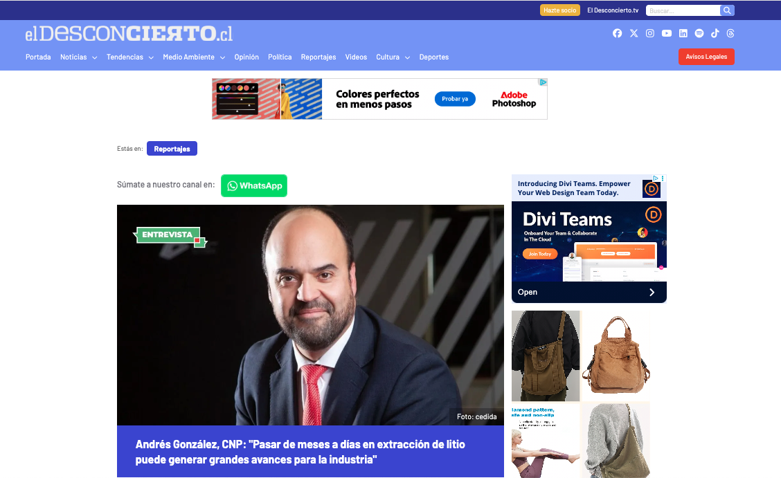 El Desconcierto CNP: “Pasar de meses a días en extracción de litio puede generar grandes avances para la industria” Leer más » 27/01/2026