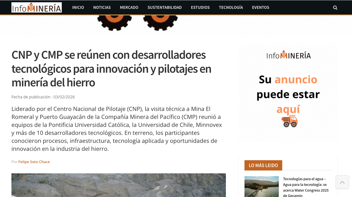 Reporte Minero CNP y CMP articulan jornada técnica para impulsar pilotajes tecnológicos en minería del hierro Leer más » 03/02/2026