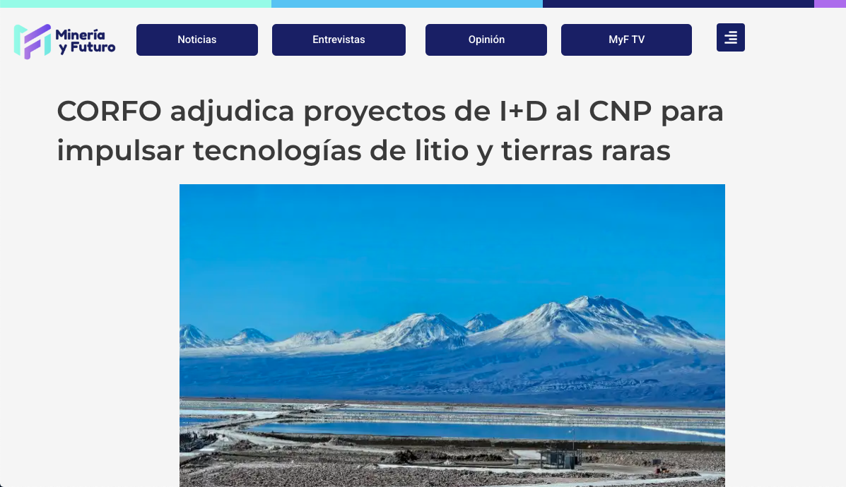 Minería y Futuro CORFO adjudica proyectos de I+D al CNP para impulsar tecnologías de litio y tierras raras Leer más » 12/01/2026